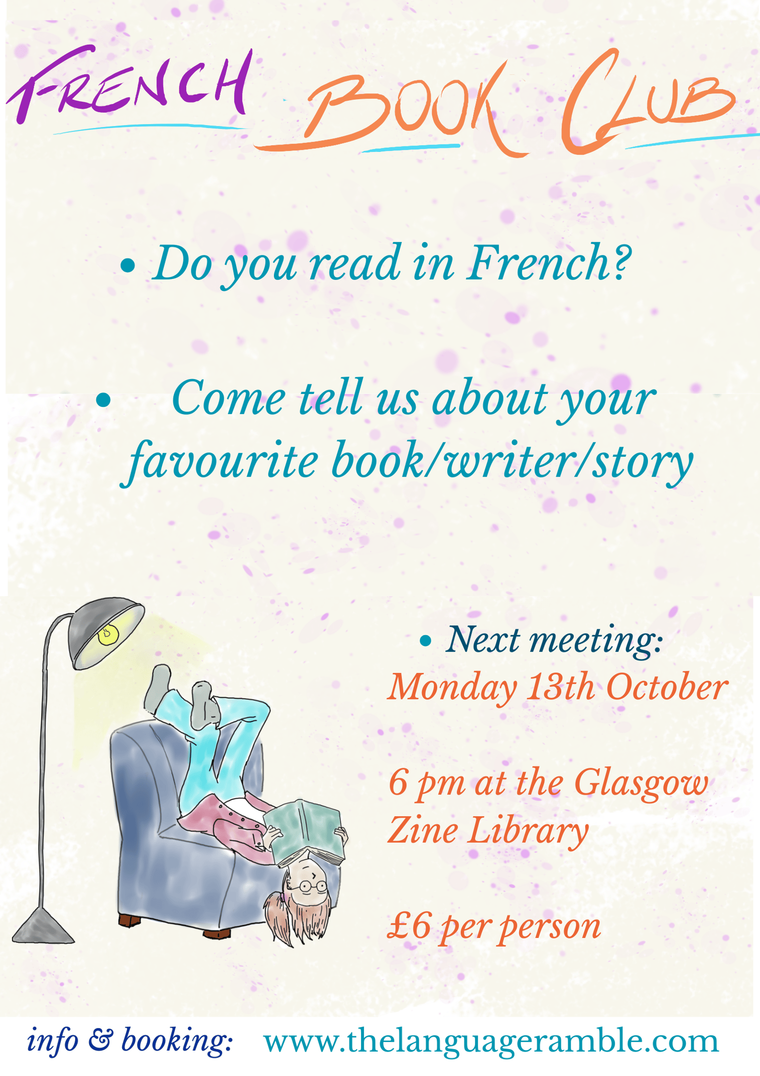 Come talk to us about any book, writer or story in French that you like.